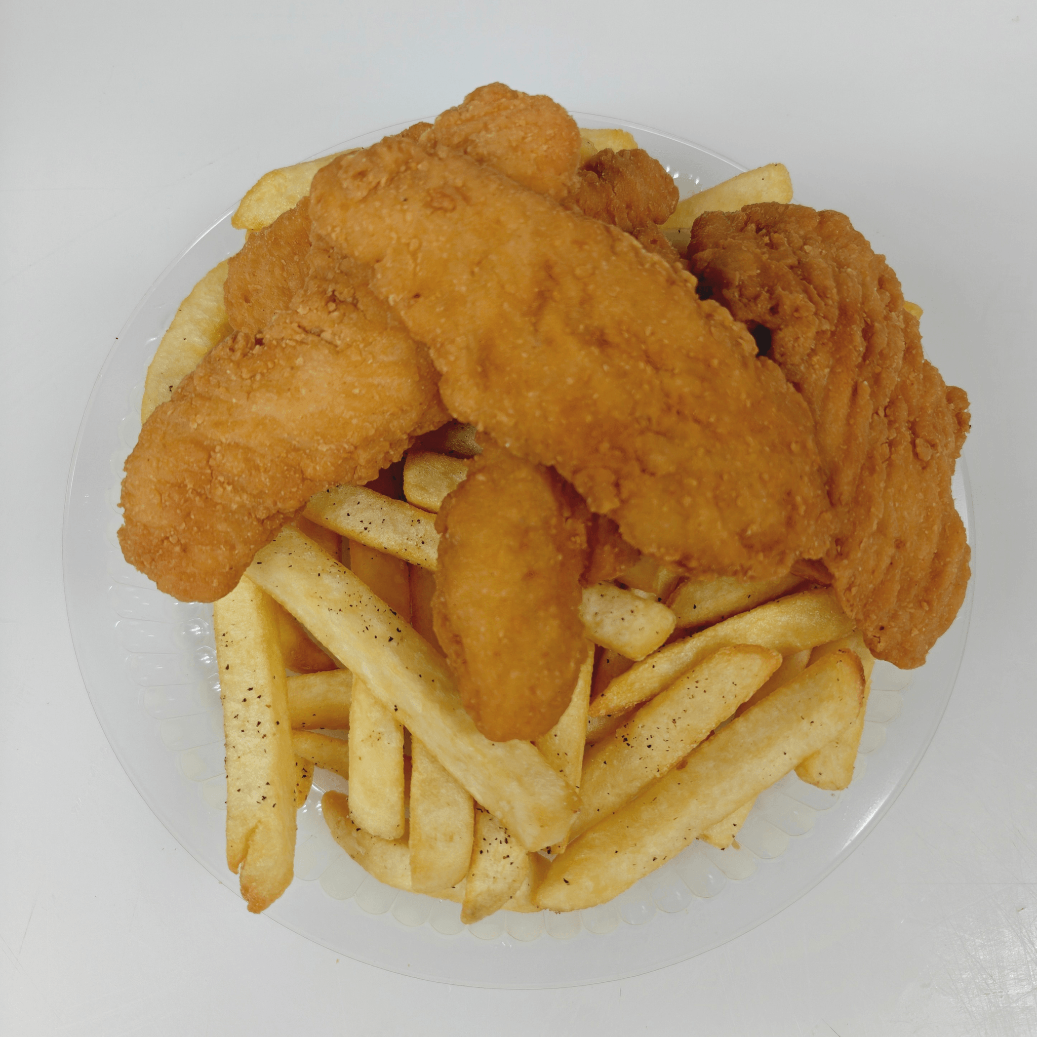 3/5 pieces of fried chicken tenders with fries