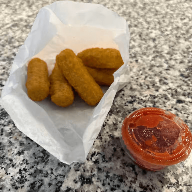 Mozzarella cheese that has been coated and fried. Served with marinara sauce dip